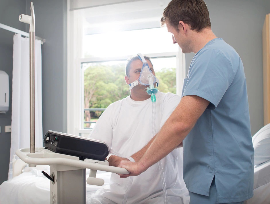 Al combinar un arnés 3D que se ajusta a la forma con tecnología de almohadillas comprobada, la máscarilla oronasal, facial completa ventilada para hospital AcuCare™ F1‐4 ofrece estabilidad sin necesidad de soporte para la frente.
